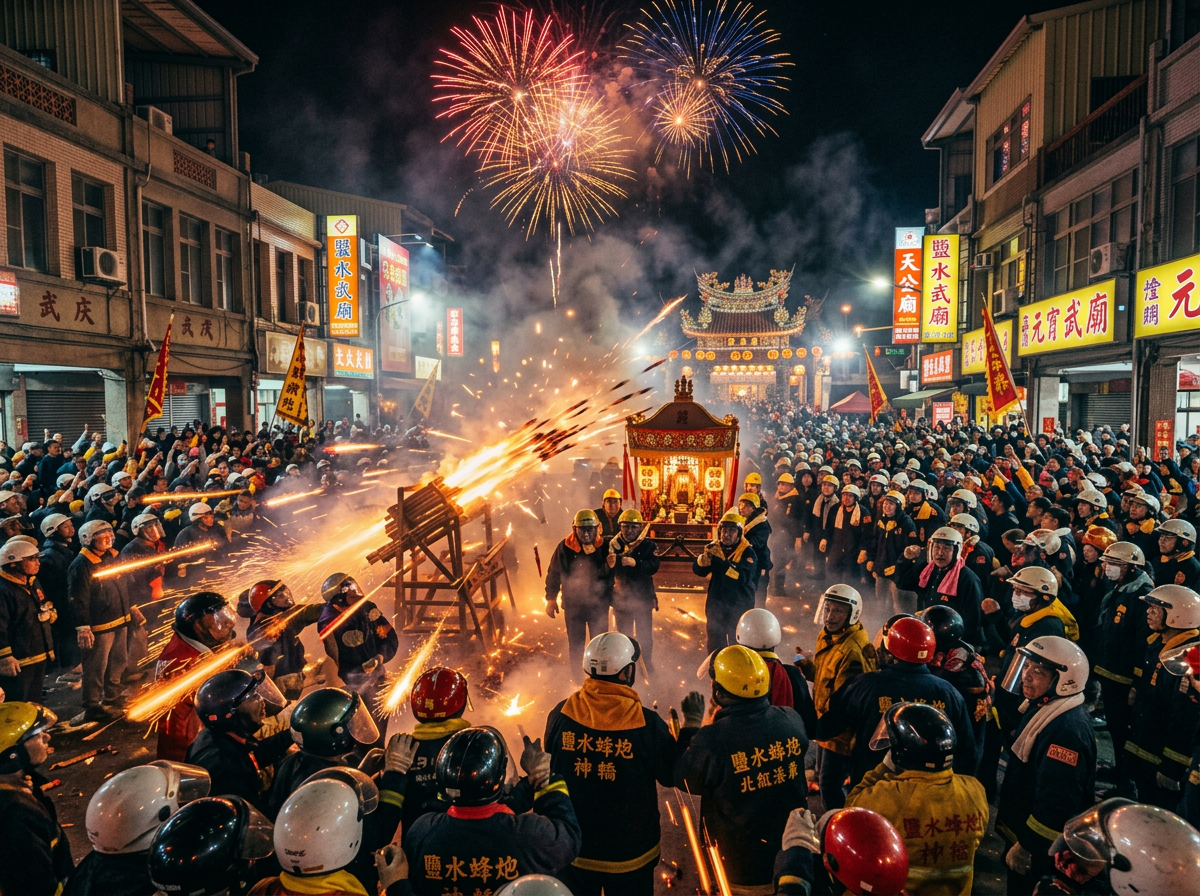 Taiwan’s Yanshui Beehive Festival. Fireworks launched directly at crowds. You’re both in full protective gear, rockets screaming past your heads, explosions everywhere, adrenaline flooding your system. Your partner grabs your hand through the chaos. You’re laughing or screaming—it’s hard to tell the difference. You learn: choosing each other in the middle of beautiful danger is the whole point.